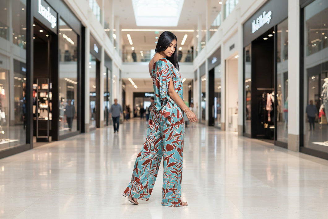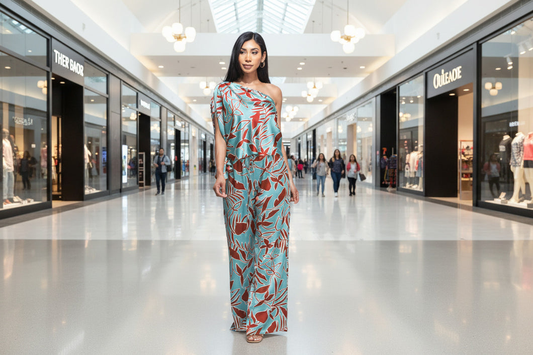 2 PC SET ONE SHOULDER POLYESTER FLOWY SET WIDELEG PANT